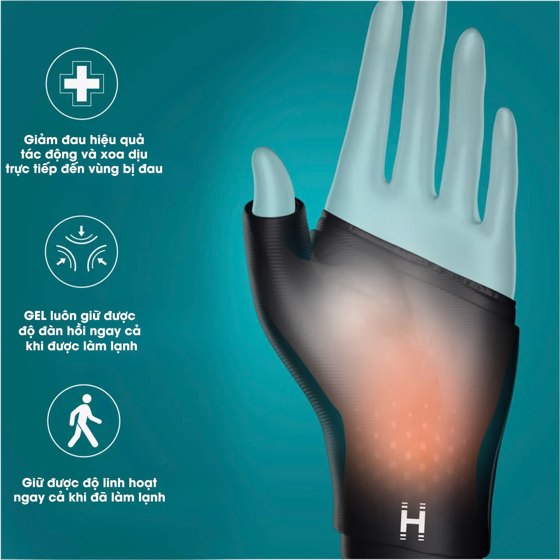 Thiết kế ôm sát 360 độ chuyên biệt cho vùng cổ tay. Sản phẩm ôm khít theo đường cong tự nhiên, bao phủ toàn bộ cổ tay, lòng bàn tay và gốc ngón cái - những vị trí thường chịu nhiều áp lực. Cấu trúc 3 lớp cao cấp bao gồm: lớp ngoài bằng Spandex co giãn 4 chiều kèm miếng dán Velcro điều chỉnh linh hoạt, lớp giữa là gel Hydrogel giữ nhiệt ổn định và lớp lót tiếp xúc trực tiếp với da mềm mại, cách nhiệt.