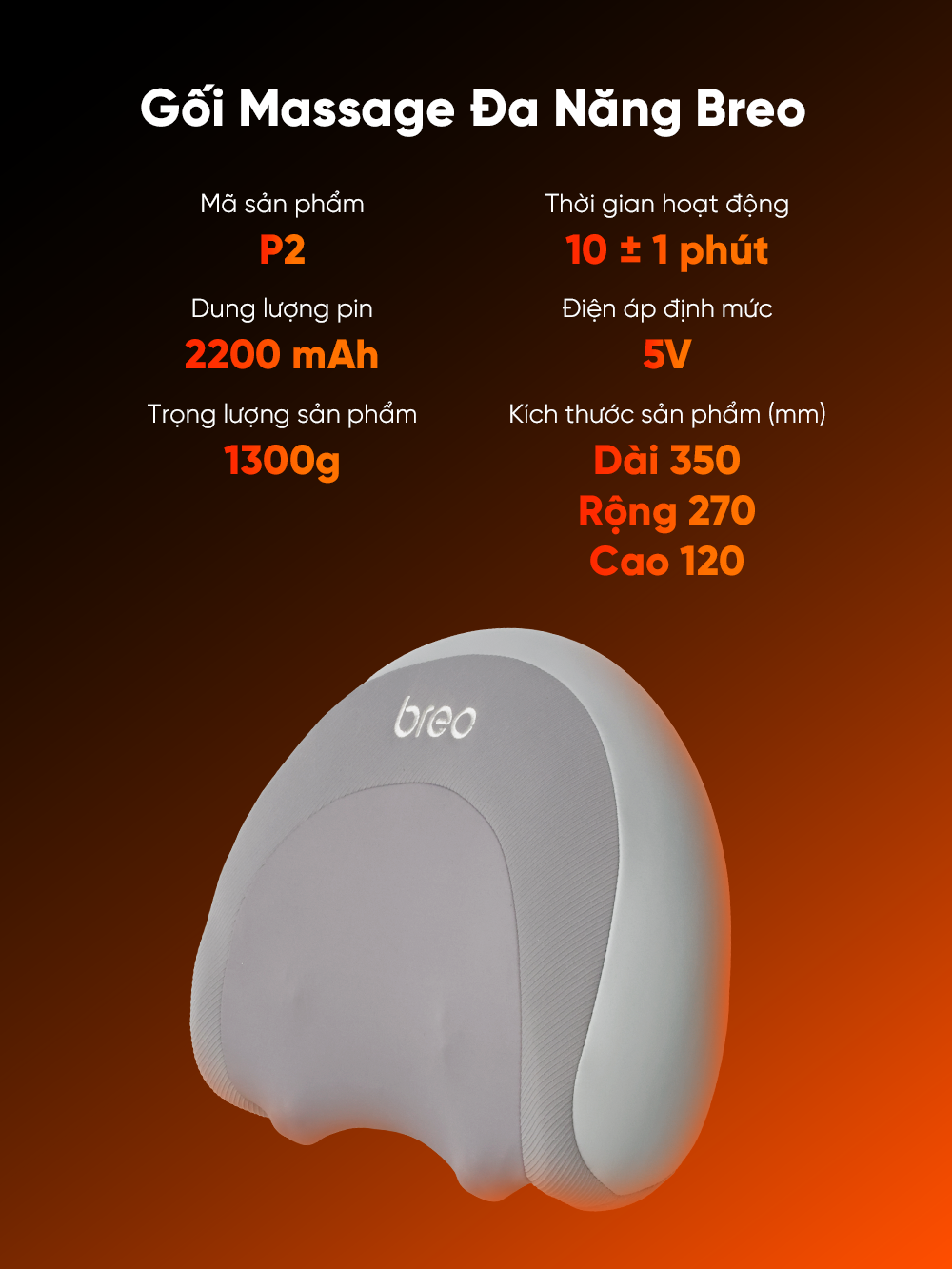 Đặc điểm của gối massage cổ và lưng đa năng BREO P2