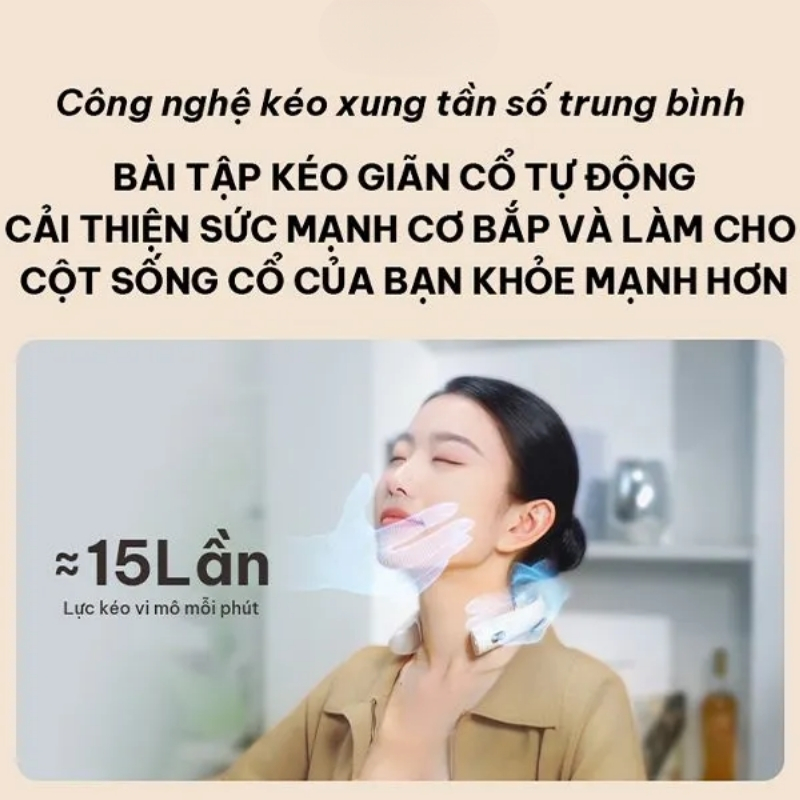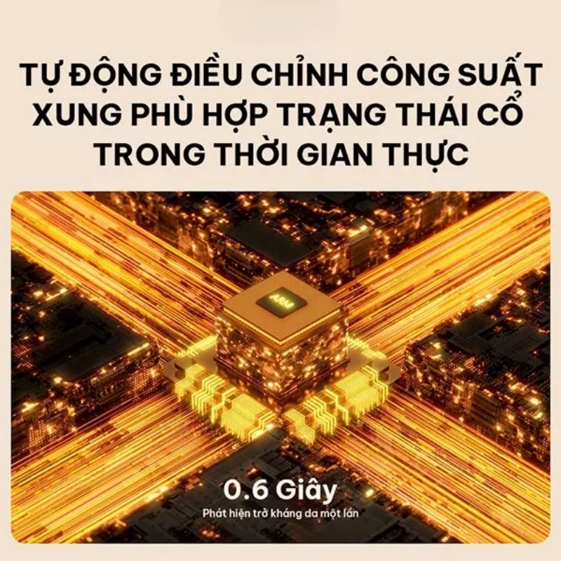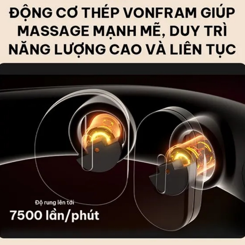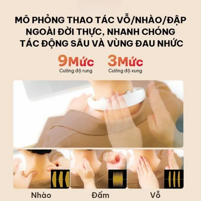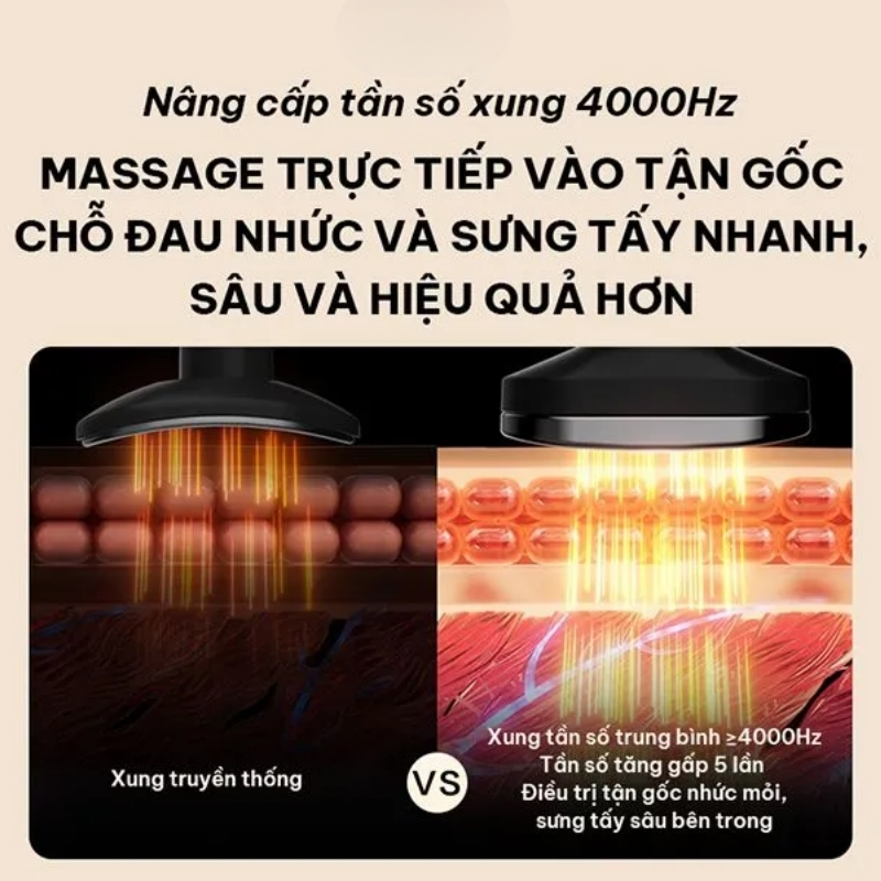 Công nghệ EMS xung điện 4000Hz với 4 động cơ Vonfram tiên tiến: Sử dụng xung điện EMS mô phỏng tín hiệu thần kinh tự nhiên, kích thích cơ co giãn nhẹ nhàng tại các huyệt đạo chính. Tần số rung 7500 lần/phút từ 4 động cơ thép Vonfram, hiệu quả gấp đôi so với massage thủ công, đặc biệt cho đau vai cổ mãn tính hoặc do cúi đầu lâu.