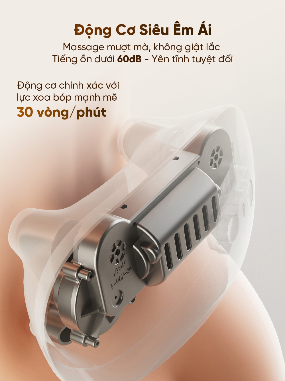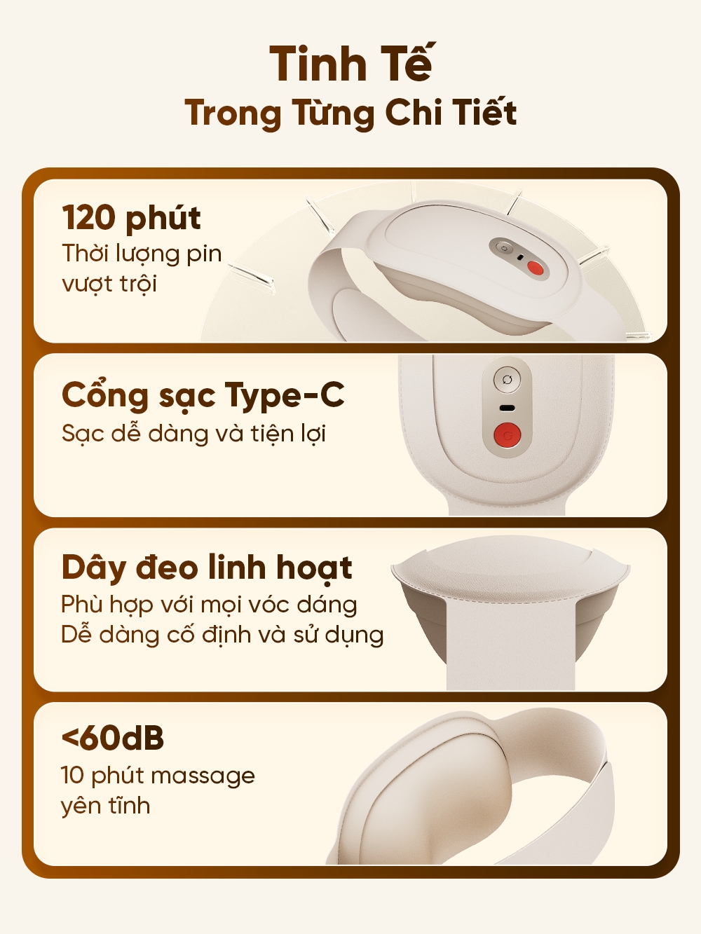 Chất liệu cao cấp và êm ái: Làm từ vải Lycra siêu mềm, thoáng khí và thân thiện với da, thoải mái khi dùng lâu mà không gây kích ứng. Với 2 chế độ massage chuyên sâu, sản phẩm dễ điều chỉnh qua nút bấm đơn giản. Độ ồn dưới 60dB cho phép sử dụng ở văn phòng hoặc ban đêm mà không làm phiền.