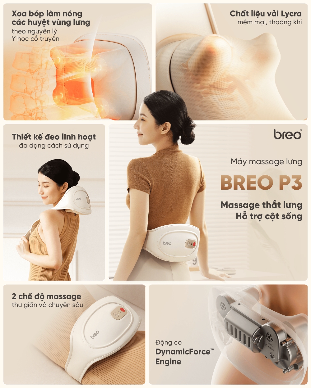 BREO P3 không chỉ giảm đau lưng tức thì mà còn hỗ trợ tiêu hóa bằng cách kích thích huyệt đạo, cải thiện tư thế và giảm stress. Sản phẩm đặc biệt phù hợp cho người lớn tuổi hoặc ai có rối loạn tiêu hóa nhẹ, phụ nữ đến kỳ hành kinh. Để phát huy hiệu quả tốt nhất, bạn nên sử dụng tối đa 15-20 phút/ngày, bắt đầu từ chế độ nhẹ tránh dùng trên vết thương hở và tham khảo bác sĩ nếu có bệnh lý tim mạch hoặc mang thai nhé!