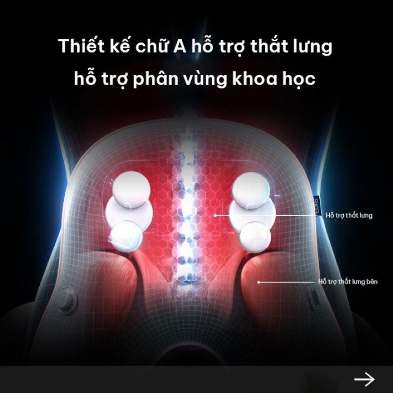 Thiết kế công thái học với cấu trúc tam giác chữ A thuôn dài, phân vùng massage khoa học, nâng đỡ cột sống thắt lưng và giảm áp lực khi ngồi lâu. Thiết kế này đảm bảo các đầu massage 4D tiếp xúc chính xác, phân bổ lực đều để phát huy tối đa mà không gây khó chịu.